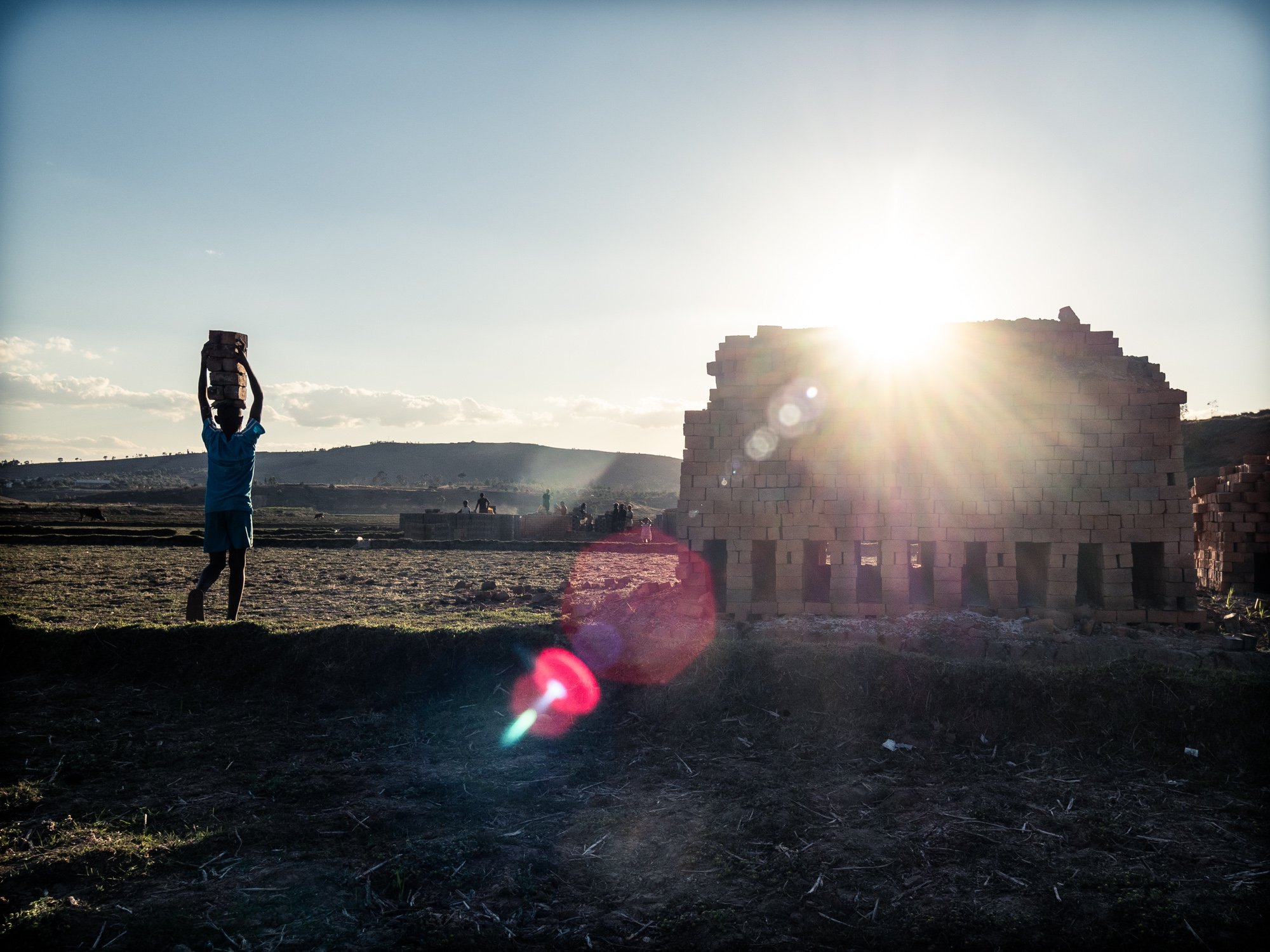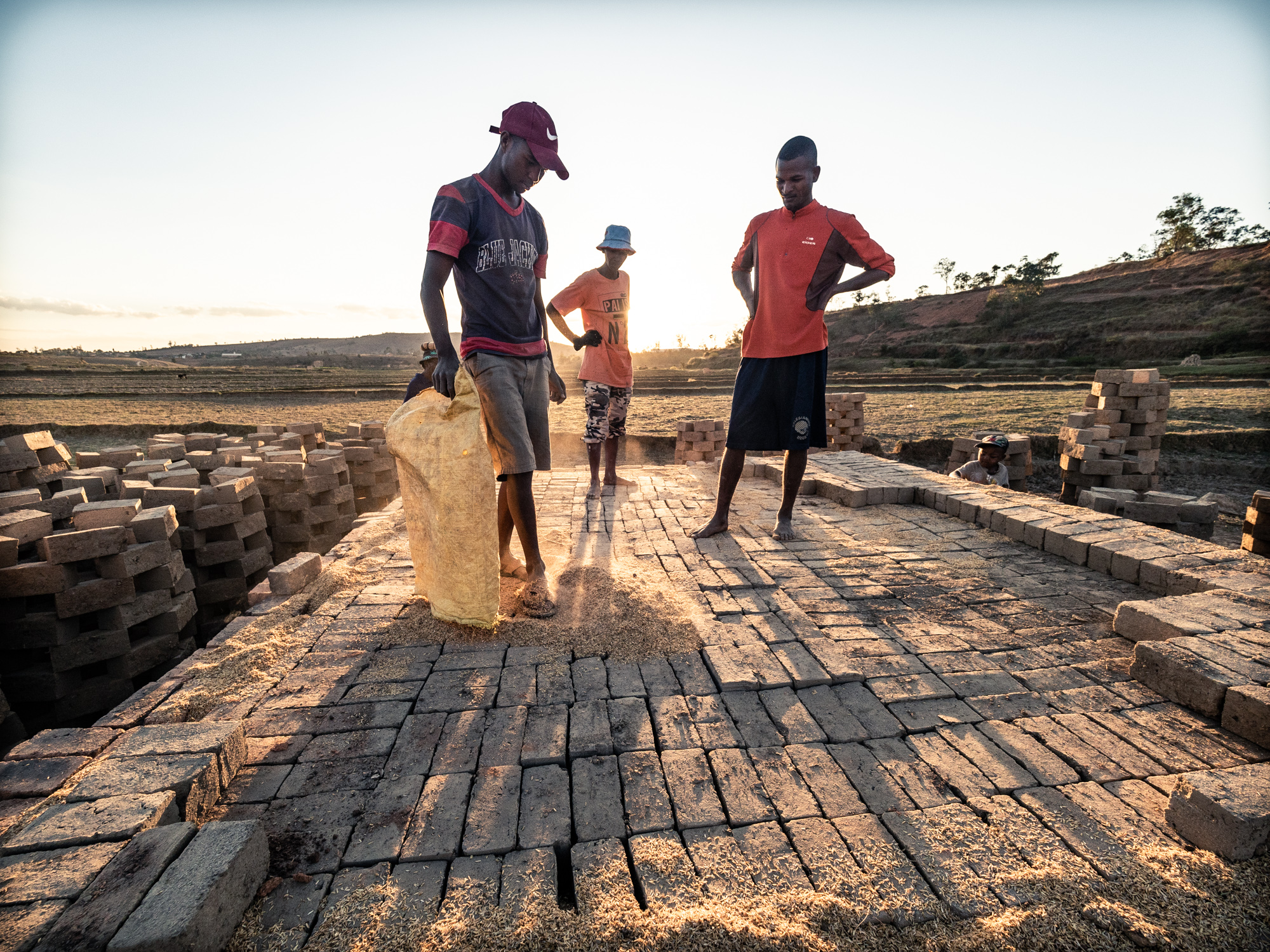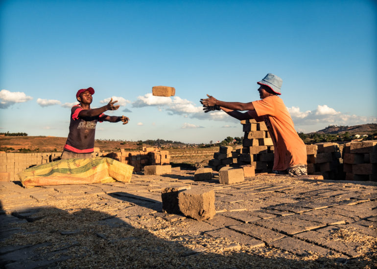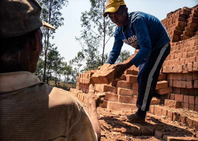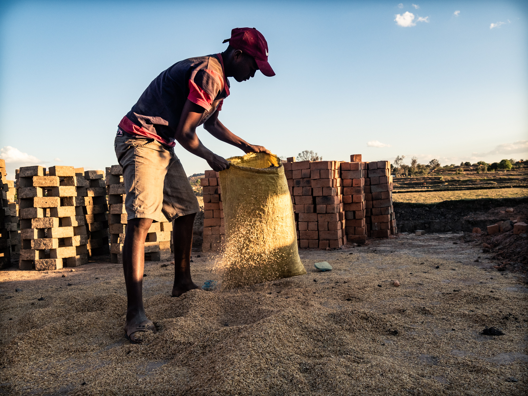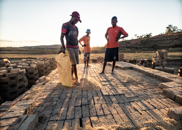 Il riso, in Madagascar, è una risorsa fondamentale. La coltivazione del riso è una attività che riveste un importanza ancestrale al di là del prodotto riso. C’è nei confronti delle risaie una riverenza ancestrale che ha molto, moltissimo a che fare con l’animismo, basti pensare che in certi orari della giornata si osserva il silenzio, si dice, pe non disturbare le messi. Finito il ciclo di crescita, dopo il raccolto, non si esaurisce l’importanza della risaia. All’inizio della stagione secca prima che il fango solidifichi le stesse famiglie (nella quasi totalità dei casi braccianti conduttori della coltivazione del riso per conto dei proprietari) utilizzano lo stesso fango per confezionare mattoni di argilla. I mattoni vengono fatti essiccare al sole e “cotti” in fornaci costruite con gli stessi mattoni.