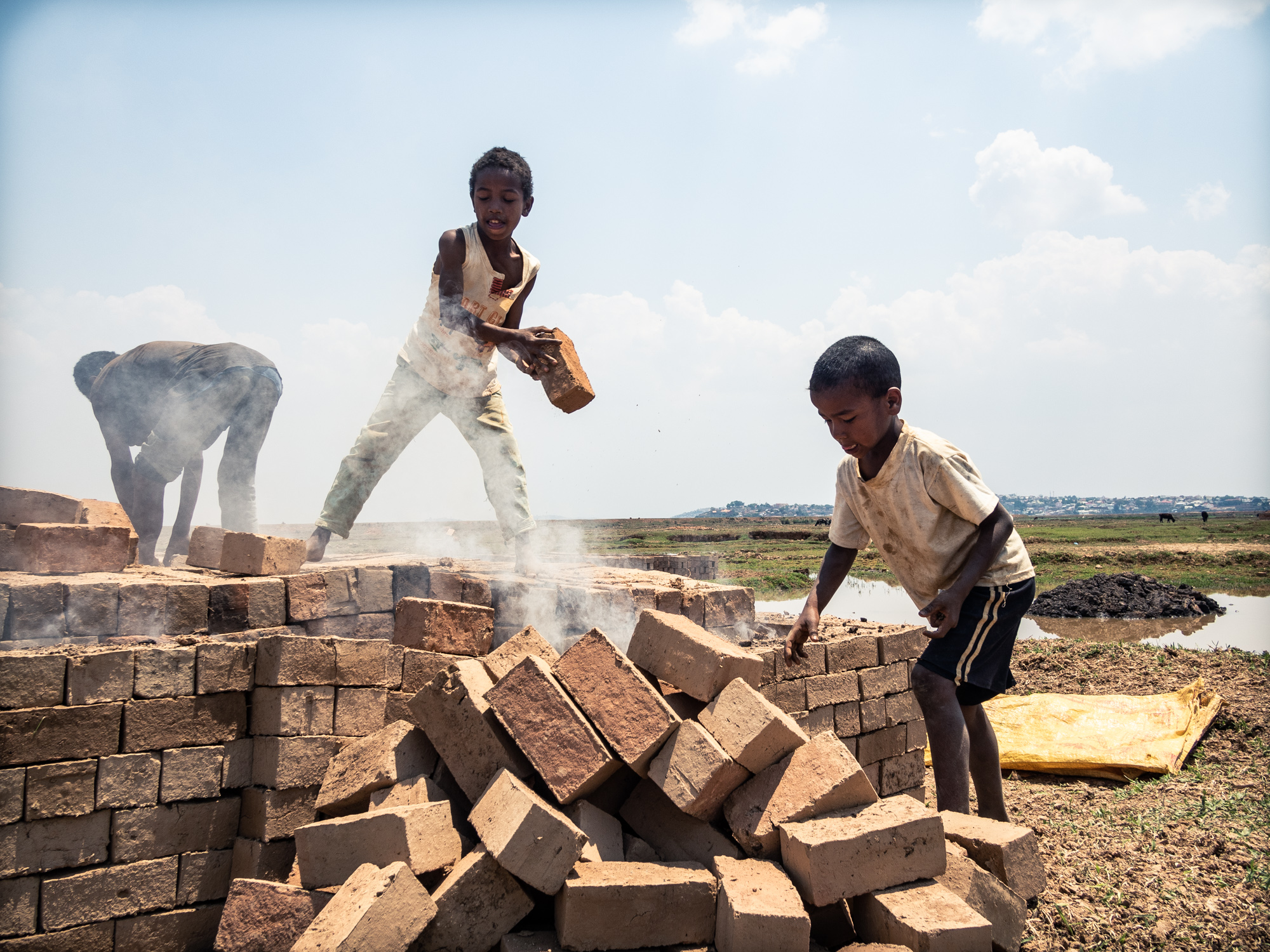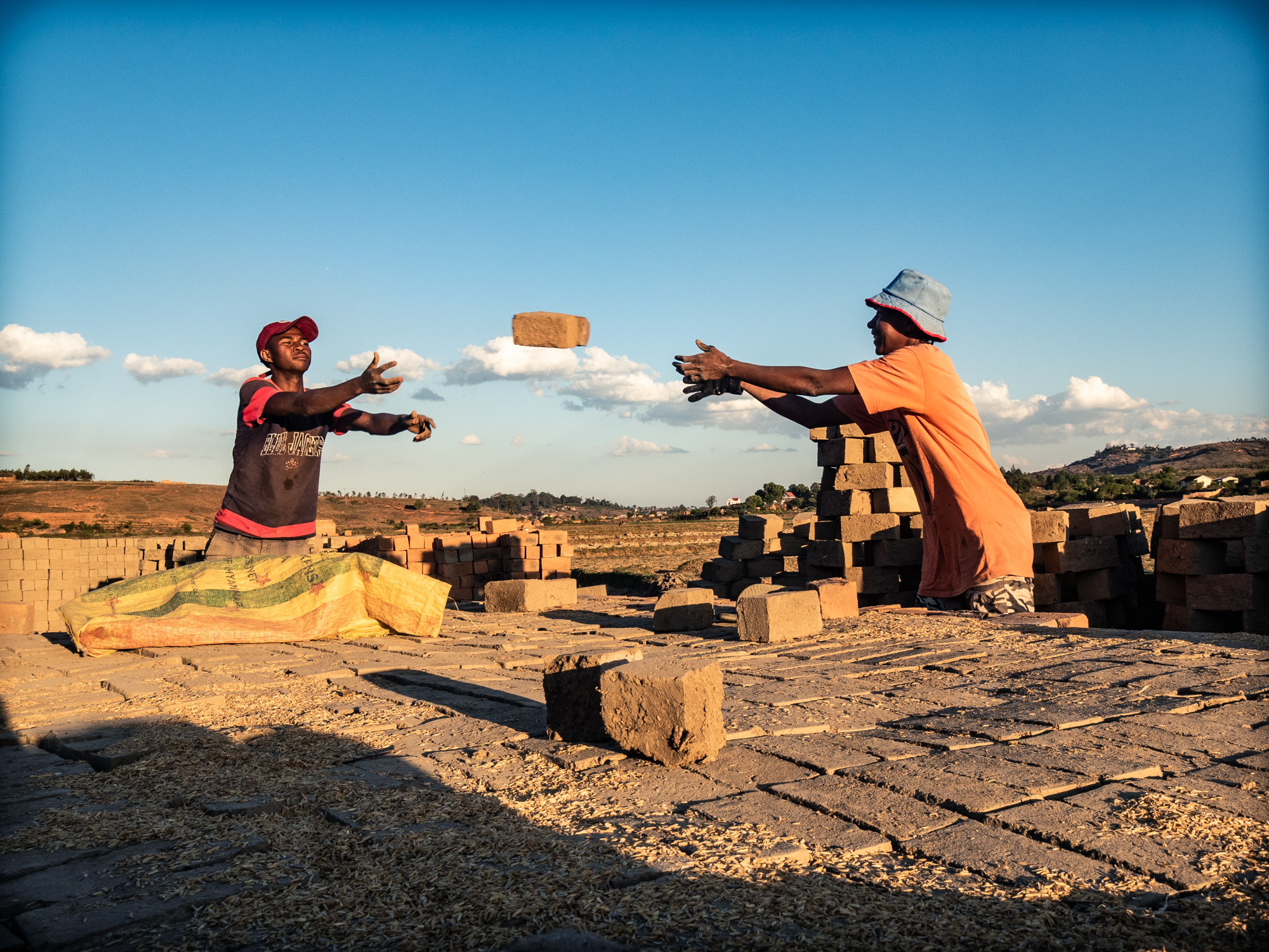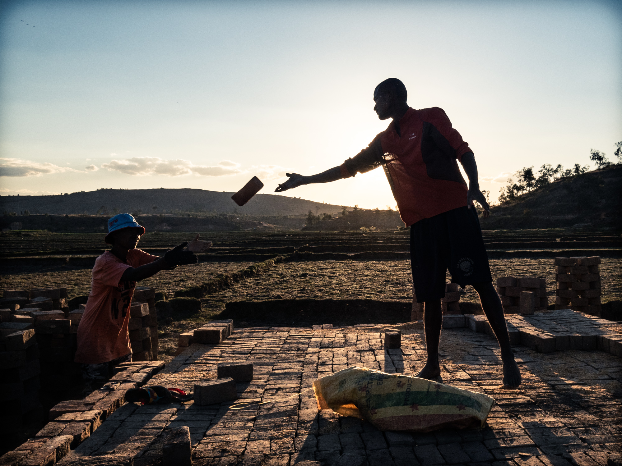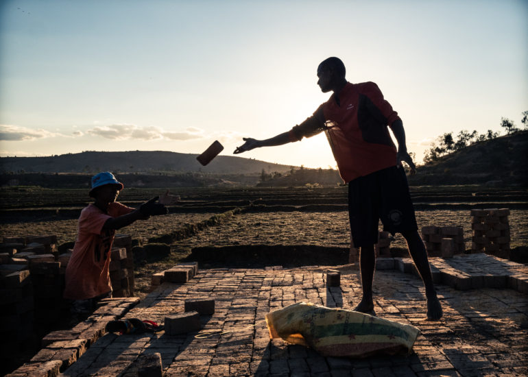 Il riso, in Madagascar, è una risorsa fondamentale. La coltivazione del riso è una attività che riveste un importanza ancestrale al di là del prodotto riso. C’è nei confronti delle risaie una riverenza ancestrale che ha molto, moltissimo a che fare con l’animismo, basti pensare che in certi orari della giornata si osserva il silenzio, si dice, pe non disturbare le messi. Finito il ciclo di crescita, dopo il raccolto, non si esaurisce l’importanza della risaia. All’inizio della stagione secca prima che il fango solidifichi le stesse famiglie (nella quasi totalità dei casi braccianti conduttori della coltivazione del riso per conto dei proprietari) utilizzano lo stesso fango per confezionare mattoni di argilla. I mattoni vengono fatti essiccare al sole e “cotti” in fornaci costruite con gli stessi mattoni.